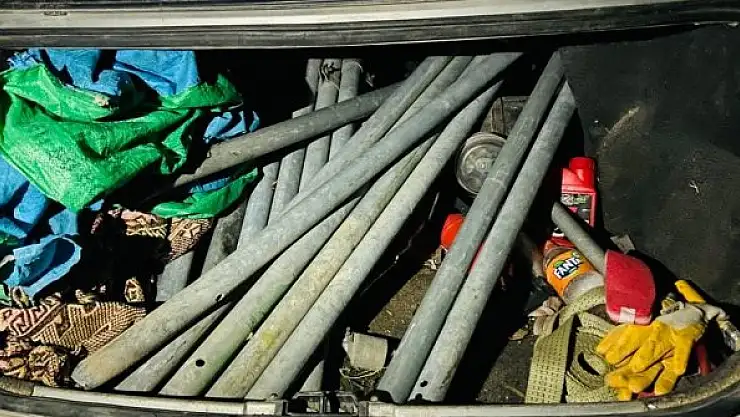 Mersin'de otoyol kenarında kullanılan galvanizli boru ve fens tellerini çalan şüpheli, çalıntı malzemelerle birlikte yakalandı.