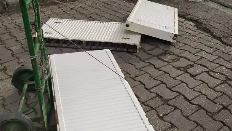 Çaldığı kalorifer peteklerini el arabası ile götürürken yakalandı