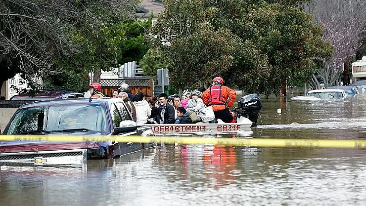 ABD'nin California eyaletinde şiddetli yağışların etkili olduğu bölgede su baskını yaşanan evlerinde mahsur kalan 200'e yakın kişi teknelerle kurtarıldı.
