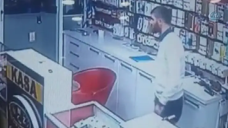 Güvenlik kameralarına yansıyan görüntülerde elinde poşet olan şahıs dükkanın içinde dolaşarak cep telefonlarını poşete dolduruyor. Daha sonra kasaya yönelen şahıs paraları alıyor. Ellerinde cep telefonu dolu poşetlerle birlikte iş yerinden çıkan şahıs kayıplara karışıyor.