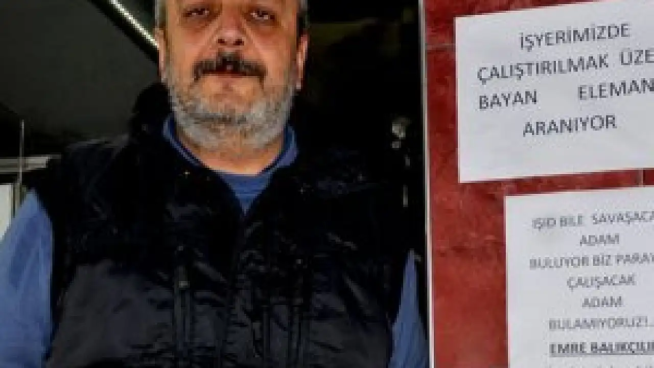 İş yerinin girişine astığı ilanda ”IŞİD bile savaşacak adam buluyor biz parayla çalıştıracak adam bulamıyoruz. İsmini söyleye bilen, evinin adresini bilen eleman aranıyor” yazarak çalıştıracak ve yetiştirecek eleman arıyor.