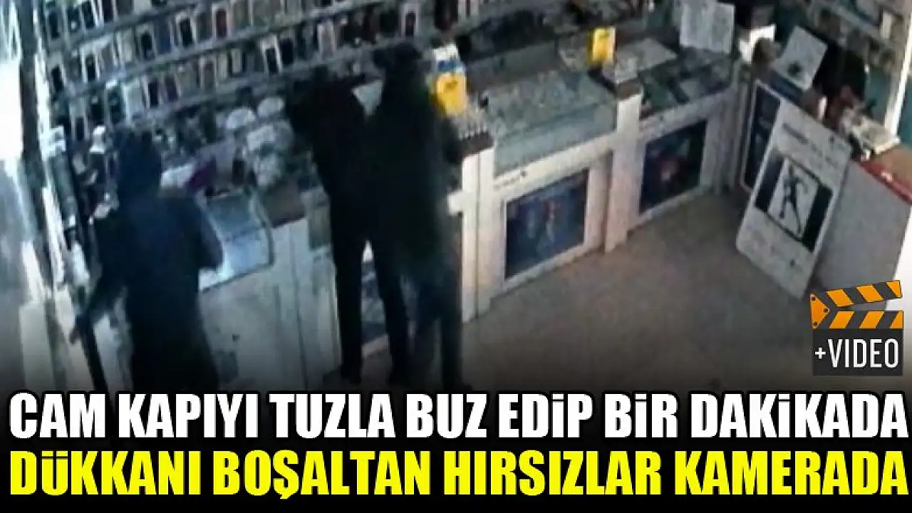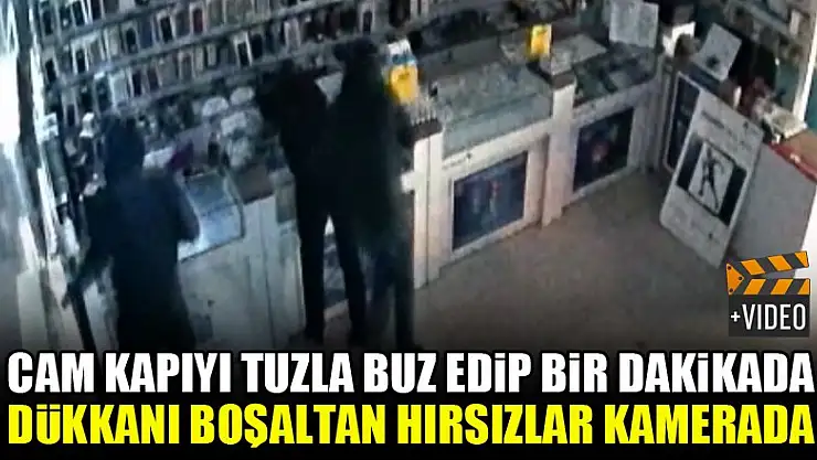Cam kapıyı tuzla buz edip bir dakikada dükkanı boşaltan hırsızlar kamerada
