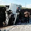 Cam yüklü Kamyonet devrildi