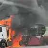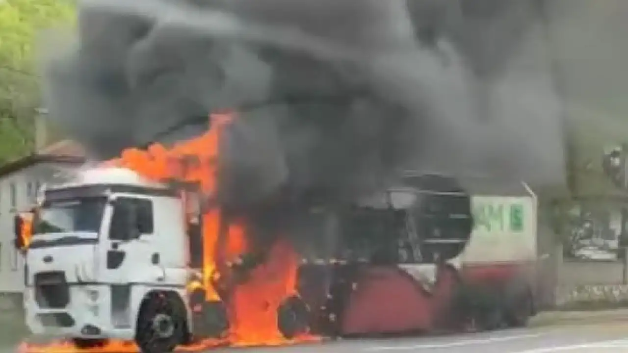 Cam yüklü TIR, alev alev yandı