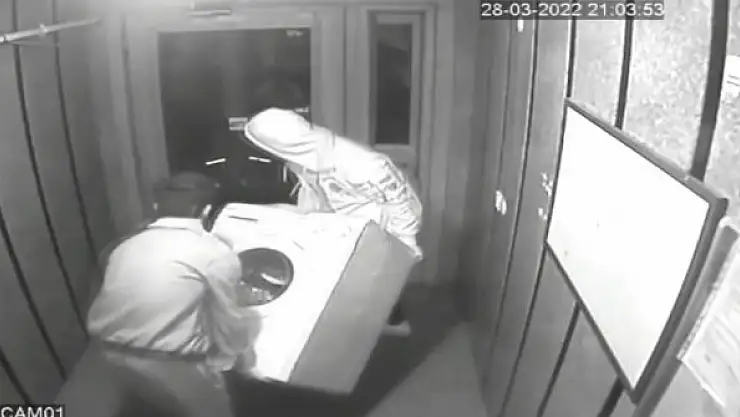 Maltepe Fındıklı Mahallesi'nde geçen cuma günü saat 11.00'de İ.A.(23) ile M.D.A.(31), binanın kapısını açarak içeri girdi. Binanın bodrum katına ilerleyen 2 hırsız, burada bulunan çamaşır makinasını çaldı. Hırsızlık anı binanın güvenlik kamerasına saniye saniye yansıdı. Daha sonra hırsızlar, yeni olduğu öğrenilen çamaşır makinasını Ataşehir Kayışdağı Mahallesi'nde hurdacılık yapan H.S.(22)'ye sattı. Polis, İ.A.'yı Maltepe Fındıklı Mahallesi'nde, M.D.A.'yı da Ataşehir Mevlana Mahallesi'ndeki bir adreste gözaltına aldı. Şüphelilerin hırsızlık benzeri asayiş suçlarından kayıtlarının olduğu öğrenildi. Şüphelilerin yakın zamanda bisiklet, 4 kuş kafesi, ısıtıcı ve bilgisayar çaldıkları da belirlendi. İ.A ve M.D.A. "Açıktan Hırsızlık" suçundan mahkemeye sevk edildi. 2 şüpheli adli kontrolle serbest bırakıldı.