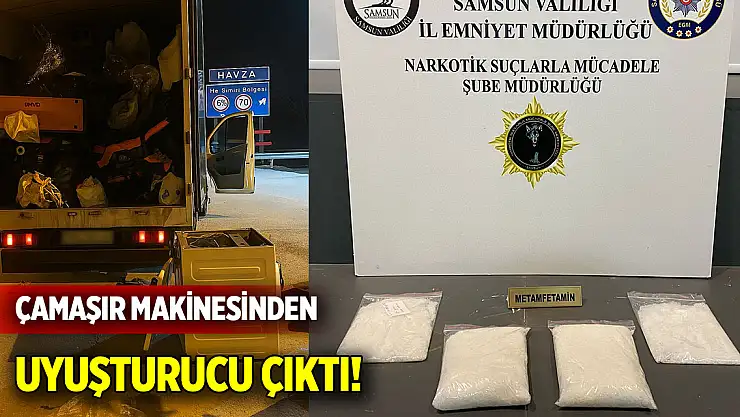 İl Emniyet Müdürlüğü Narkotik Suçlarla Mücadele Şube Müdürlüğü ekipleri, Havza ilçesinde yaptığı uygulama sırasında şüphelendikleri bir kamyoneti durdurdu. Eşya yüklü kamyonette yapılan aramalarda, çamaşır makinesi içine gizlenmiş 1 kilo 361 gram metamfetamin ele geçirildi. Olayla ilgili kamyonetteki O.T. (37), Ç.B. (44) ve M.B.T. (21) gözaltına alındı. Soruşturma sürüyor.