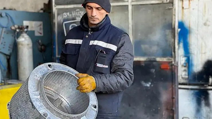 Vatandaşlardan ve hurdacılardan topladıkları eski çamaşır makinesi kazanlarını atölyede odun sobasına dönüştüren gönüllüler, şimdiye kadar 144 sobayı deprem bölgesine gönderdi.