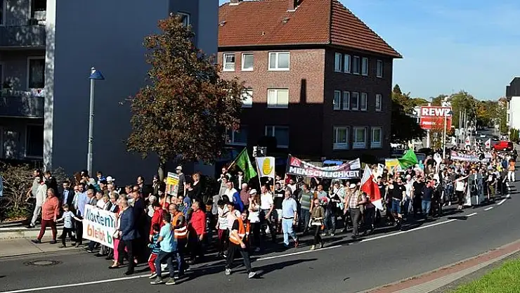Yaklaşık 2 bin kişinin yer aldığı yürüyüşte “Nordenham çoğulcudur ve çoğulcu kalacak. Irkçılar kentimizde yer bulamayacak” şeklinde sloganlar atıldı.