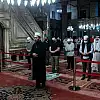 Hacı Bayram Veli Camisi'ne sabah namazını kılmak için gelen vatandaşlar belirtilen kurallara uyarak ibadetini yaptı.