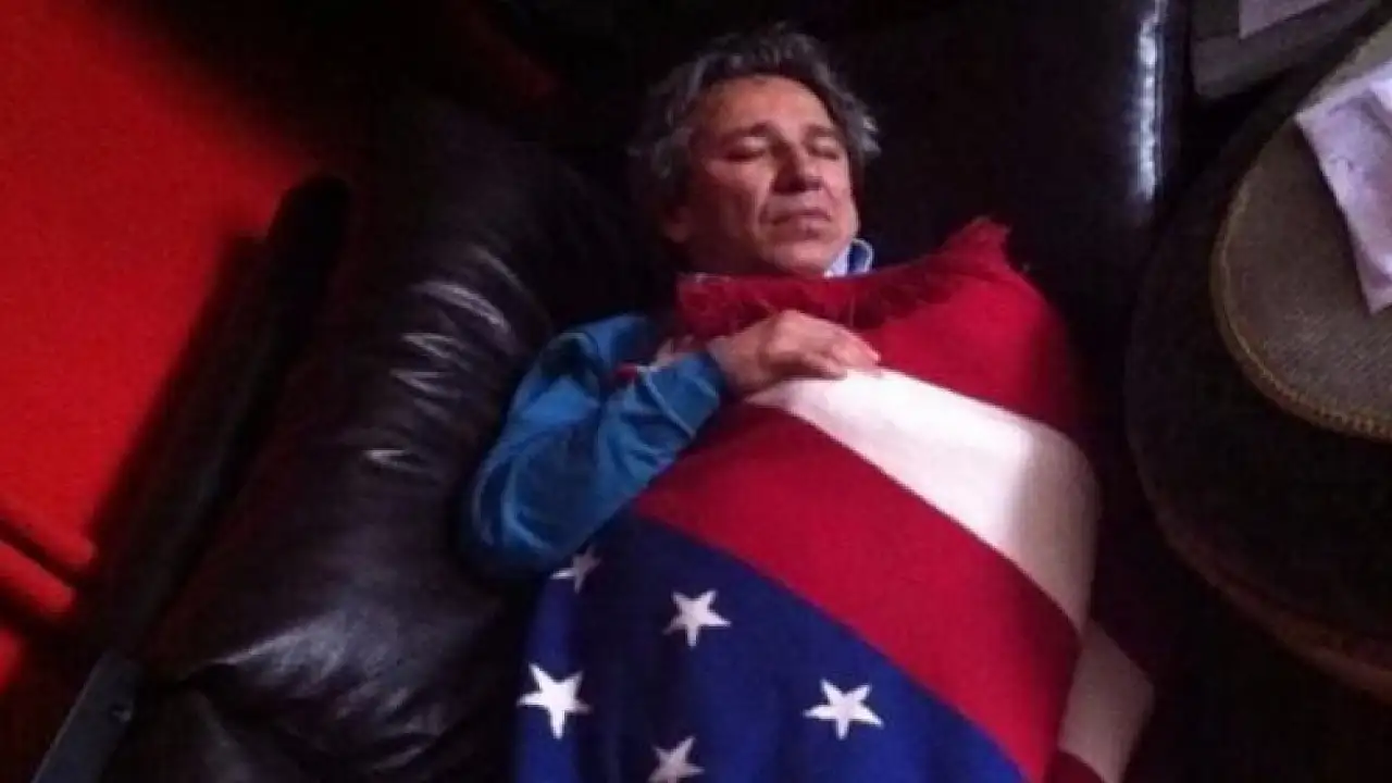 Vatana ihanet suçundan yargılanan Can Dündar bu kez de Amerikan bayrağına sarılı halde görüldü.