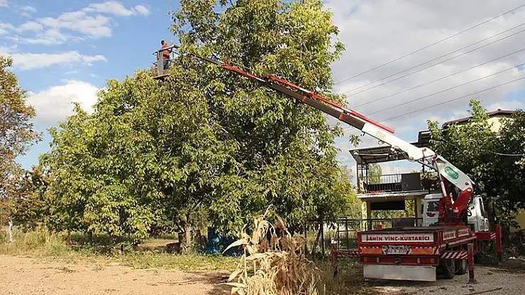 Mehmet Şahin de ağaçların yüksek kesimlerine vinçle müdahale ettiklerini belirterek, "Bu sene cevizler güzel ama ağaçlar yüksek olduğu için dalda kalıyor. Ulaşamadığımız yerlerde de vinçle müdahale ediyoruz. Cevizlerimiz dallarda kalmasın diye. Ağacın şekline göre vinci yönlendirerek, cevizin olduğu yerlere, yetişebildiğimiz yerlere uzanıyoruz." dedi.