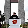 "Vatanın bütünlüğü ve bağımsızlığı söz konusu olduğunda, Türk milletinin vatanı için hangi zorluklara göğüs gerebileceğinin en güzel örneğidir Çanakkale. Ülkemizin bugün ulaştığı seviye, başta Çanakkale ve Kurtuluş Savaşları olmak üzere Kore'de, Kıbrıs'ta, iç güvenlik harekatında, yurt dışında icra edilen harekatlarda hayatlarını kaybeden aziz şehitlerimizin eseridir. Ülkemizin birliğine göz diken düşmanlarımızın ve terör örgütlerinin kutsal vatan topraklarına yönelik tüm tehditleri, dün olduğu gibi bugün de Türk milleti ve onun bağrından çıkmış olan Türk Silahlı Kuvvetleri tarafından kararlılıkla bertaraf edilecektir. Sizlere söz veriyoruz ki Çanakkaleler sonsuza dek geçilemeyecek, gök kubbeden ay yıldızlı al bayrak hiç inmeyecek, dünya var oldukça bu topraklar Türk yurdu olmaya devam edecek, Çanakkale ruhumuzda var olacaktır."