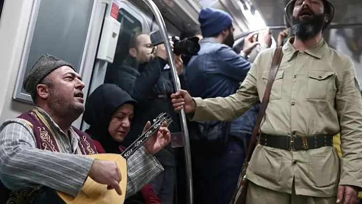 Çanakkale Savaşı'nda savaşan askerleri temsilen dönemin asker kıyafeti ve teçhizatıyla kuşanan "kınalı kuzular", metronun Yenikapı İstasyonu'nda yolcularla buluştu. Yolculara cephedeki bir günlük yemeği temsilen hoşaf ve arpa ekmeği dağıtan temsili askerler, daha sonra metroya bindi. Burada Hacıosman yönüne giden yolculara, savaşı anlatan kısa bir oyun sahneleyerek, Çanakkale türküleri seslendirdi.