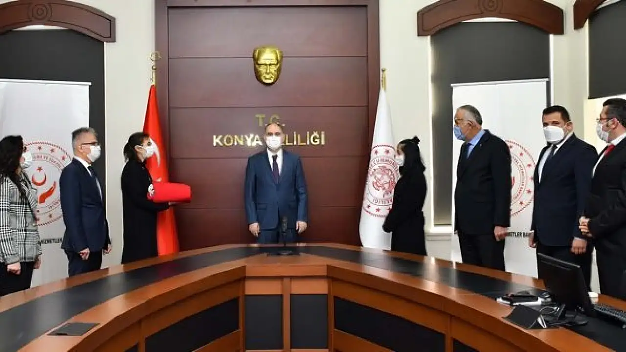 Valilikten yapılan açıklamada, Vali Vahdettin Özkan'ın katılımıyla düzenlenen törende, Karaman'dan getirilen şanlı bayrağın, Aile, Çalışma ve Sosyal Hizmetler Bakanlığına bağlı kuruluşlarda kalan Esma Hatun Eser tarafından Konya temsilcisi Ezgi Ünüvar'a teslim edildiği belirtildi.