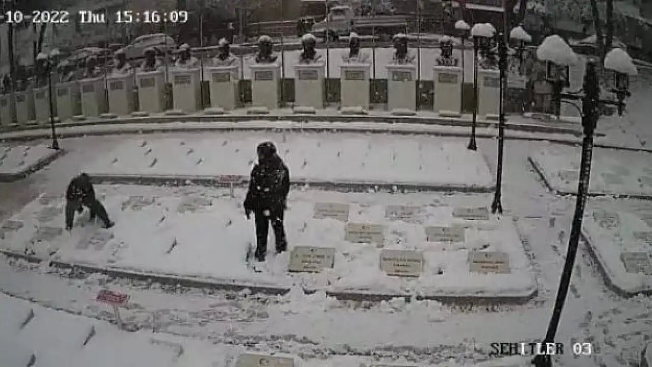 Çan'da kar yağışı devam ederken Çanlı Gaziler, Şehitler ve Türk Devletleri Anıtı'na gelen 2 çocuk, karla kaplanan mezar taşlarını temizledi. Belediyenin güvenlik kameralarına yansıyan o anları Çan Belediye Başkanı Bülent Öz, "İlçemizde kar yağışı devam ederken, Belediyemizin güvenlik kameralarına takılan bu sıcacık görüntüleri sizlerle paylaşmak istedim. Çan Belediyesi Çanlı Gaziler, Şehitler ve Türk Devletleri Anıtı'na gelen 2 evladımız, mezar taşları üzerindeki karları temizlemek için epey çaba saffetmişler ve sonrasında bizleri duygulandıran bu harika görüntülerle karşılaşmış olduk. Evlatlarımızı ve onları yetiştiren ailelerini kutluyor, en kısa zamanda bu evlatlarımızın kim olduklarını belirleyerek belediyemizde ağırlamak istiyoruz" ifadelerine yer vererek paylaştı.