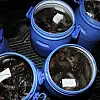 Araçta yapılan incelemede, içi su dolu bidonlara konulmuş yaklaşık 500 kilogram deniz patlıcanı ele geçirildi.