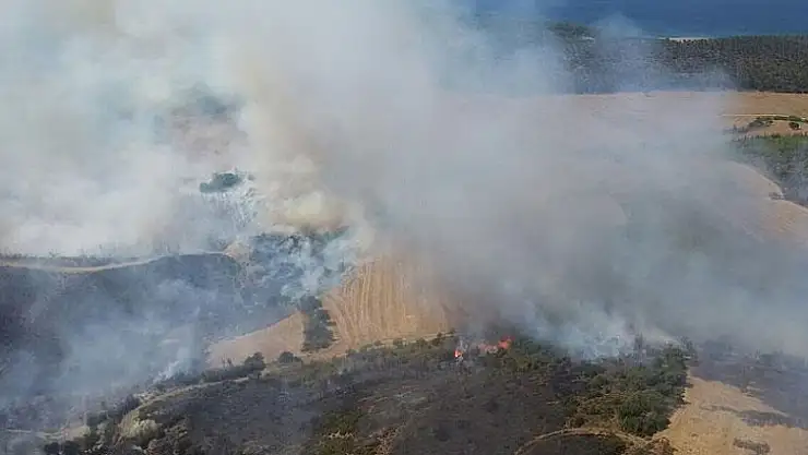 Çanakkale'nin Gelibolu ilçesinde, tarım arazisinden başlayan yangın, kuvvetli rüzgarın etkisiyle ormanlık alana sıçradı.
