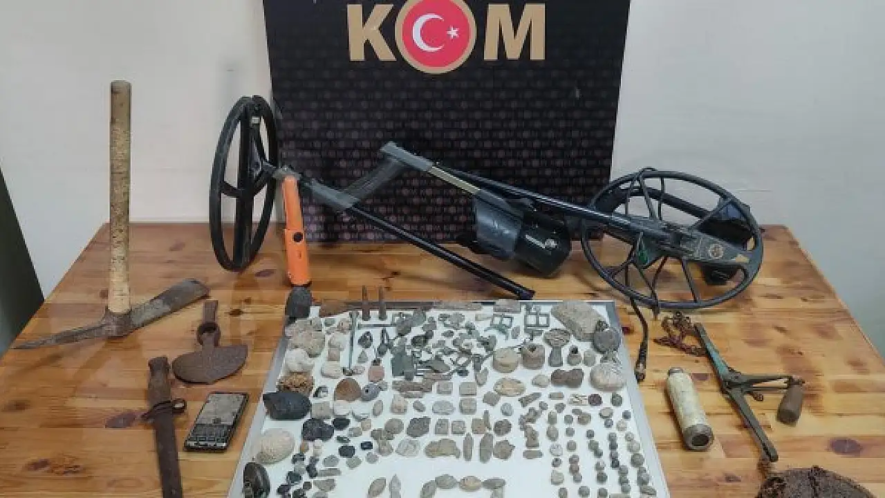 Çanakkale İl Emniyet Müdürlüğü Kaçakçılık ve Organize Suçlarla Mücadele Şube Müdürlüğü ekipleri, istihbarat çalışmasıyla, şüpheli T.Ş.'nin evinde tarihi eser olduğu değerlendirilen objeler bulunduğunu belirledi. T.Ş.'nin evine dün operasyon düzenlendi. Evdeki aramada 1 metal kazma kürek, 1 metal süngü, 1 el kantarı, 1 dürbün ve tarihi eser olduğu değerlendirilen 121 adet kurşun, 63 adet metal, 58 adet taş olmak üzere toplam 283 obje ele geçirildi.