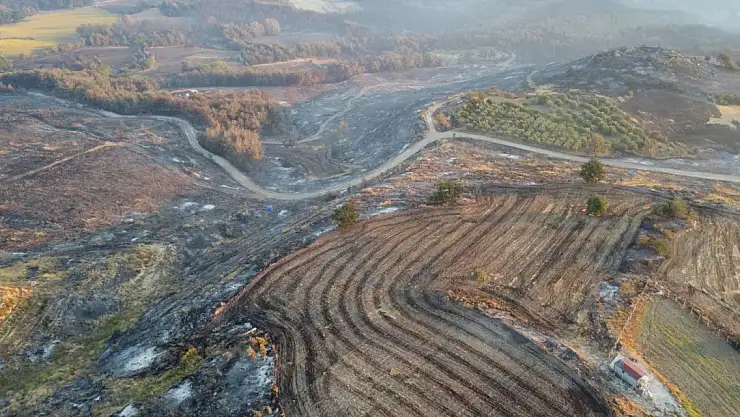 Çanakkale'de yanan alanlar dron ile havadan görüntülendi