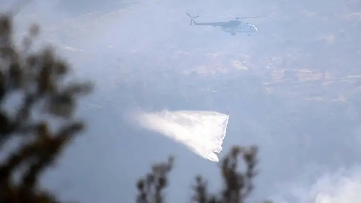 Yangın bölgesine 6 uçak, 15 helikopter, 109 arazöz, 14 iş makinesi ve 543 personelle müdahale ediliyor.