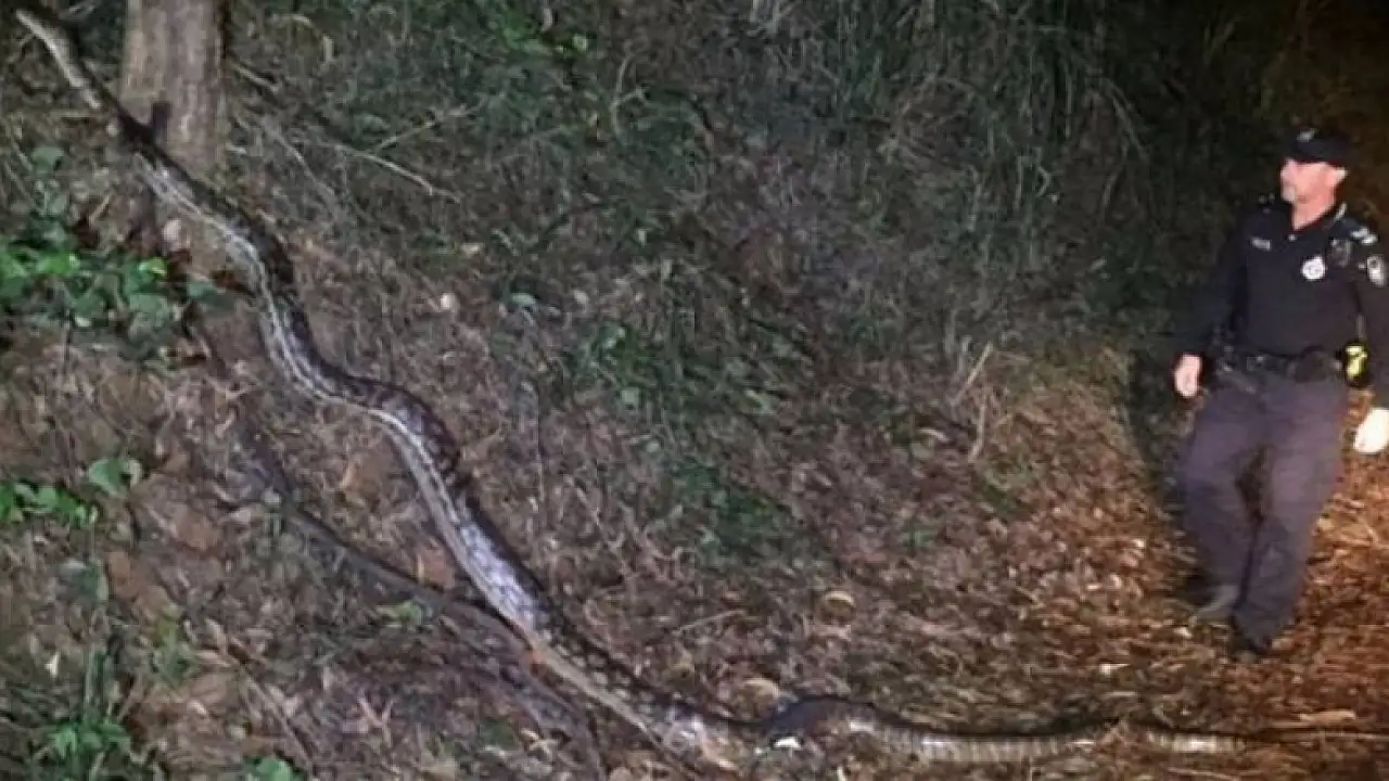 Avustralya'nın doğusundaki Queensland eyaletinde devriye gezen polislerin gördüğü yoldan geçen canavar piton, dünyada olay yarattı.