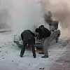 Canını hiçe sayarak aracını söndürmeye çalıştı