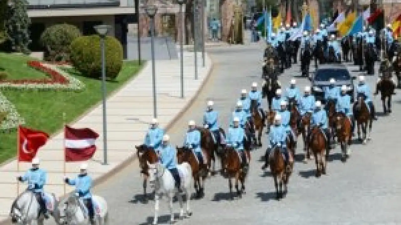 Törende Kara Harp Okulu Atlı Birliğine bağlı süvariler, konuk cumhurbaşkanı Berzins'i taşıyan makam aracına Cumhurbaşkanlığı Yerleşkesi'ne girişinden tören alanına kadar eşlik etti.