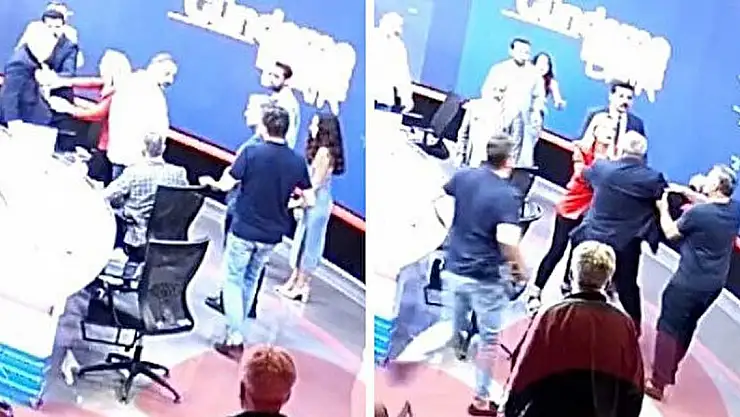 Stüdyodakilerin araya girmesinin ardından iki isim ayrıldı fakat kameraların görmediği noktada kavga devam etti.