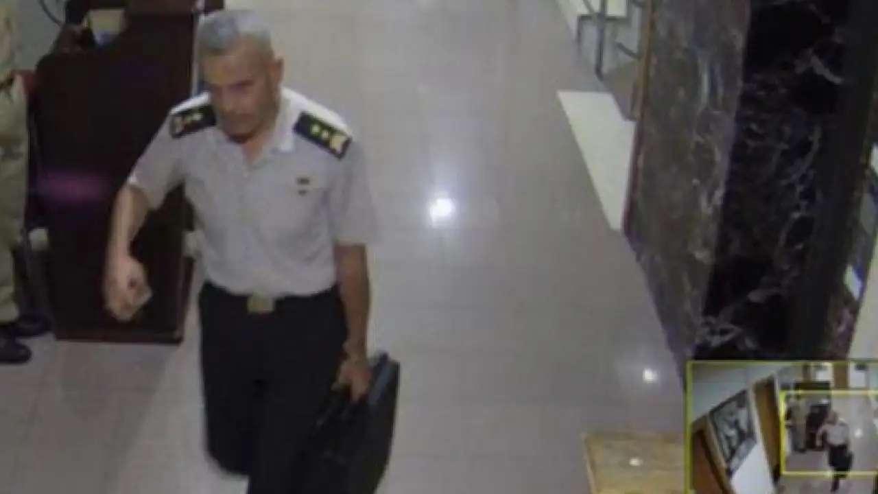 İddianameye giren görüntüler, Dişli'nin, Akar'ın makam odasının bulunduğu karargah katına kadar çantasını hiç yanından ayırmadığını ortaya çıkardı.