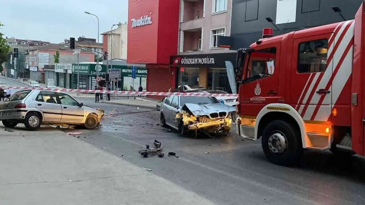 Ümraniye'de aşırı hızlı otomobil sürücüsü caddeden çıkan otomobile çarptı.
