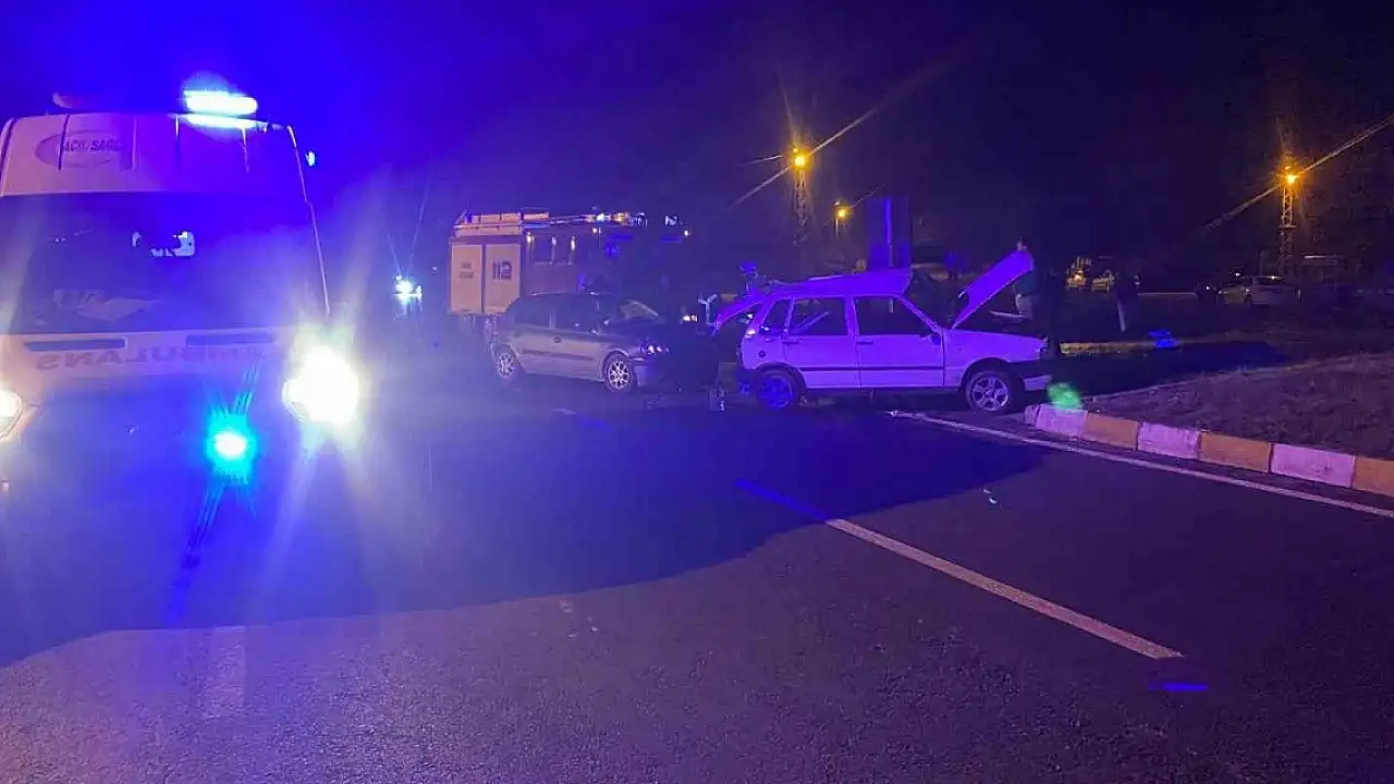 Çarpışan iki otomobilde 2'si ağır 3 kişi yaralandı