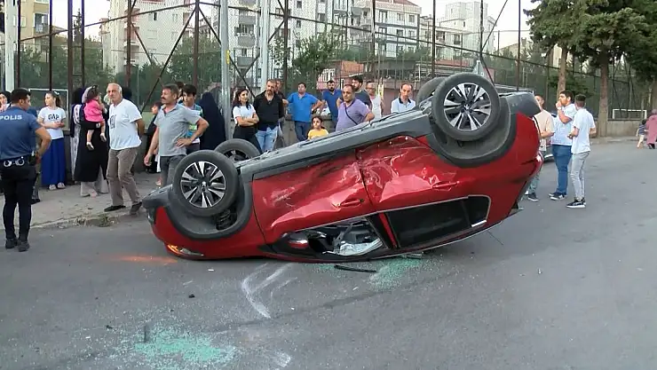 Çarpışan iki otomobilden biri takla attı