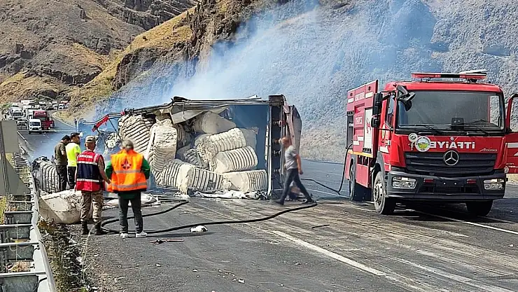 Çarpışan TIR ile kamyon alev aldı yol ulaşıma kapandı