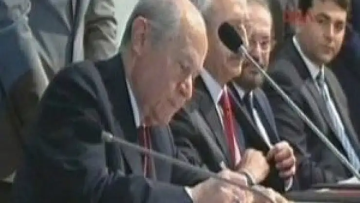 Cumhuriyet Halk Partisi Genel Başkanı Kemal Kılıçdaroğlu, Milliyetçi hareket Partisi Genel Başkanı Devlet Bahçeli, Demokrat Parti Genel Başkanı Gültekin Uysal, Demokratik Sol Parti Genel Başkanı Masum Türker ve Büyük Türkiye Partisi Genel Başkanı Haydar Baş, Ekmeleddin İhsanoğlu'nun cumhurbaşkanı adaylığı konusunda hazırlanan ortak deklarasyonu imzaladı.