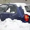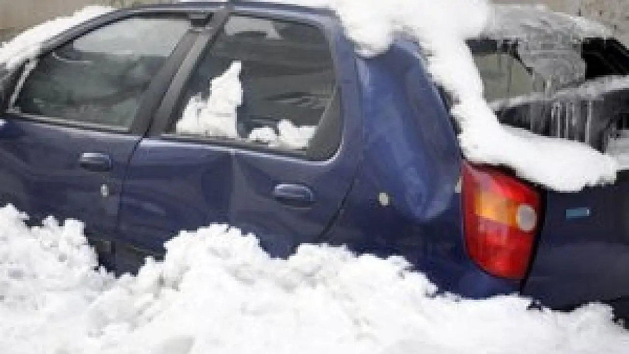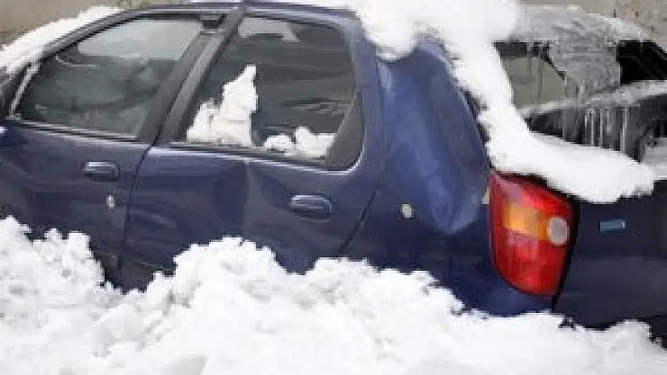 Çatıdan düşen kar kütlesi arabayı hurdaya çevirdi
