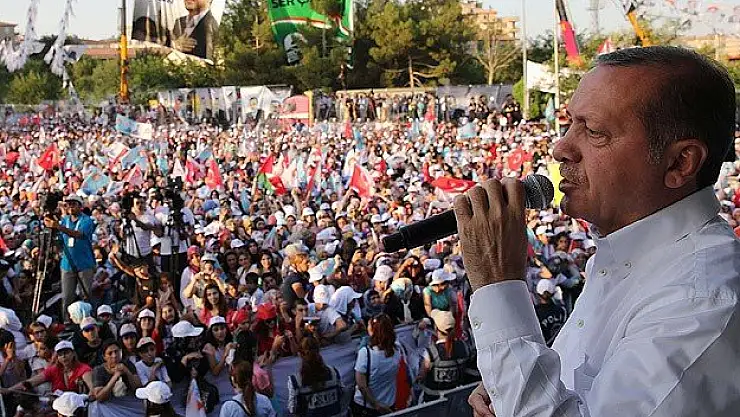 Cumhurbaşkanı adayı ve Başbakan Recep Tayyip Erdoğan, cumhurbaşkanlığı seçim kampanyası kapsamında Diyarbakır İstasyon Meydanında düzenlenen mitingde vatandaşlara hitap etti. Başbakan Erdoğan, 16 Kasım 2013 tarihinde Diyarbakır’da düzenledikleri toplu açılış törenine, Irak Kürdistan Bölgesel Yönetimi Başkanı Mesut Barzani ve 38 yıl sonra vatanına gelen Şivan Perver ve İbrahim Tatlıses ile katıldıklarını hatırlatarak, şöyle devam etti: "Değerli sanatçımız Şivan Perver 38 yıl sonra ilk kez vatanına, toprağına döndü. Sanatçımız İbrahim Tatlıses ile burada sizlere seslendi. Ne dediler; ‘meğri’ dediler, ‘ağlama’ dediler, ‘ağlama kardeş, ağlama can, ağlama Diyarbakır’ dediler. Diyarbakır o gün yine ağladı ama bu kez sevinçten ağladı. Diyarbakır umutla ağladı, kabına sığmadığı için yıllardır aradığı huzuru, kardeşlik iklimini teneffüs ettiği için ağladı. O gün inanın Trabzon ağladı, Antalya ağladı, İzmir ağladı. Diyarbakır ile birlikte televizyonlarının başında Ankara ağladı, Erzurum ağladı, İstanbul ağladı. İnanın o gün bizimle birlikte Erbil sevinç gözyaşları döktü, İslamabad, Kabil, Beyrut, Küdüs, Gazze, Şam sevinç gözyaşları döktü. O güzel manzara, o kardeşlik manzarası, birlik, dayanışma manzarası herkesin yüreklerine umut ışığı yaktı. Bu umut verici tarihi manzaranın ardından ne yaptıklarını sizler de gördünüz. 81 vilayetin sevinç gözyaşlarından birileri rahatsız oldu, 77 milyonun kucaklaşmasından birileri ciddi şekilde rahatsız oldu. O malum medya, muhalefet partileri, malum çevreler Diyarbakır’daki bu kardeşlik fotoğrafından rahatsız oldular, bu kardeşlik manzarasını gölgelemek için uğraştılar. Yetmedi 17 Aralık’ta, 25 Aralık’ta yargı ve emniyete sızmış bir grup vasıtasıyla darbe girişiminde bulundular. En başta kardeşliğimizi, en başta çözüm sürecini hedef almak istediler. Gezi olaylarının arkasındaki gerçek aktörleri sizler çok yakından tanıyorsunuz, 17 ve 25 Aralık darbe girişimlerinin arkasındakileri sizler çok yakından tanıyorsunuz. Faili meçhullerin arkasında kim varsa, işte bu saldırıların arkasında da aynı anlayış var. 1992’de Nevruz’da 40 kişinin ölümünün arkasında kim varsa, 17 Aralık darbe girişiminin arkasında o var. Bütün bu karanlık güçler, AK Parti iktidarını nasıl çökertiriz bunun gayreti içine girdiler." "Kadim düşmanlarımızın birer kuklasıydılar" Başbakan Erdoğan, iktidara karşı yapılan bütün operasyonlara karşı dik durarak, yola devam ettiğini belirterek, "17 Aralık darbesinin içinde yer alanlar, ülkemizin ve milletimizin kadim düşmanlarının birer kuklasıydılar. Biz, Pensilvanya ihanet şebekesiyle hesaplaştığımız gibi onların arkasındaki güçlerle de hesaplaşıyoruz" dedi. Gezi olayları, 17 ve 25 Aralık darbe girişim arkasında eski Türkiye koalisyonunun bulunduğunu, bu koalisyonun Türkiye'yi eski günlere, faili meçhuller dönemine, çatışmalar dönemine, gençlerin kanının aktığı, annelerin gözyaşının aktığı dönemlere, Diyarbakır zindanından feryatların yükseldiği döneme götürmek istediklerini anlatan Başbakan Erdoğan, "Allah’a hamdolsun bunu başaramadılar. Hesapların üzerinde hesap vardır, tuzakların üzerinde tuzak vardır. Rabbim kurulan bu tuzakları altüst etti, milletim 30 Mart’ta bu kirli tezgahları darmadağın etti. Fakat şimdi bir başka tuzak kurdular, o eski Türkiye koalisyonu bir kez daha ortaya çıktı, piyasaya sürdükleri cumhurbaşkanı adayıyla bir kez daha eski Türkiye hayali kurmaya başladılar. Kimin kiminle iş tuttuğunu, ittifak yaptığını siz daha iyi görüyorsunuz. Kürt kardeşlerimin sorunlarını yıllarca inkar eden, yıllarca bu topraklara, inançlara zulüm uygulayan, her darbenin arkasında duran, işte şimdi yine sahnede" diye konuştu. Erdoğan, CHP ve MHP'nin ortak bir aday çıkardığını anımsatarak, ''Türkiye'yi tanımayan, bilmeyen, Türkiye'nin sorunlarından hiç haberi olmayan bir aday. Bu aday nereye gitse oraya göre konuşuyor. CHP ve MHP'ye çok kısa zamanda uyum sağladı. Batıya gidiyor, ulusalcı oluyor. Başka bölgelere gidiyor, ırkçı oluyor. Doğuya, güneydoğuya geliyor, buranın nabzına göre şerbet vermek istiyor ama şerbeti yok. Hacıbektaş'a gidiyor, din derslerinin zorunlu olmasından şikayet ediyor. Hani diyorlar ya işte 'dini yanı da var.' E niye zorunlu din dersinden rahatsız oluyorsun?'' dedi. ''O dergiyi elinde tutarak içinde olanı dışarıya aksettirdi'' Diyarbakırlılar'a özellikle bir fotoğraf karesini hatırlatacağını belirten Erdoğan, şöyle konuştu: ''İstanbul'da bu aceminin eline bir dergi (Türk Solu) tutuşturdular. Duydunuz değil mi? Gördünüz. Bu monşer aday, kendisini destekleyen o dergiyi aldı, o dergiyle poz verdi. Şimdi ben Diyarbakır'da o rezil derginin bazı kapaklarını sizlere birkez daha hatırlatacağım. CHP ve MHP adayının elinde tuttuğu o derginin kapaklarında ne vardı biliyor musunuz? 'Kürt sorunu yoktur. Kürt istilası vardır.' Bu dergide, işte bunu kapak yaptılar. Açlık grevi yapanlara 'Açlıktan geberin' diye kapak yaptılar. 'Devlet Dersimliler'den değil, Dersimliler devletten özür dilesin' diye kapak yaptılar. CHP Genel Müdürünü ve annesini aşağılayan kapak yaptılar. Merhum Said-i Nursi'yi, merhum Muhsin Yazıcıoğlu'nu tahkir eden, orduyu darbeye çağıran, şahsımın da idamını isteyen kapaklar yaptılar. İşte bu monşer aday çıktı, bu ırkçı, faşist, kendini bilmez dergiyle poz verdi. Sanmayın ki hata yaptı. Sanmayın ki yanlışlıkla o dergiyi eline aldı. Takdiri ilahi. Zihninde, beyninde, ruhunda ne varsa, işte o dergiyi elinde tutarak, içinde olanı dışarıya aksettirdi. Şecaat arz ederken, sirkatin söyledi. Ben inanıyorum ki Diyarb