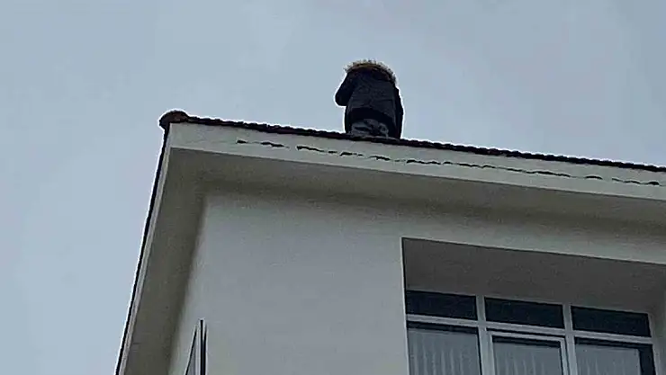 Çatıya çıkıp ekiplere zor anlar yaşattı