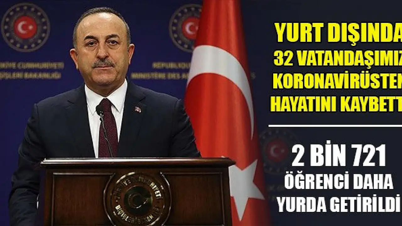 Bakan Çavuşoğlu, 'Yurt dışında 32 vatandaşımız koronavirüsten hayatını kaybetti' dedi.