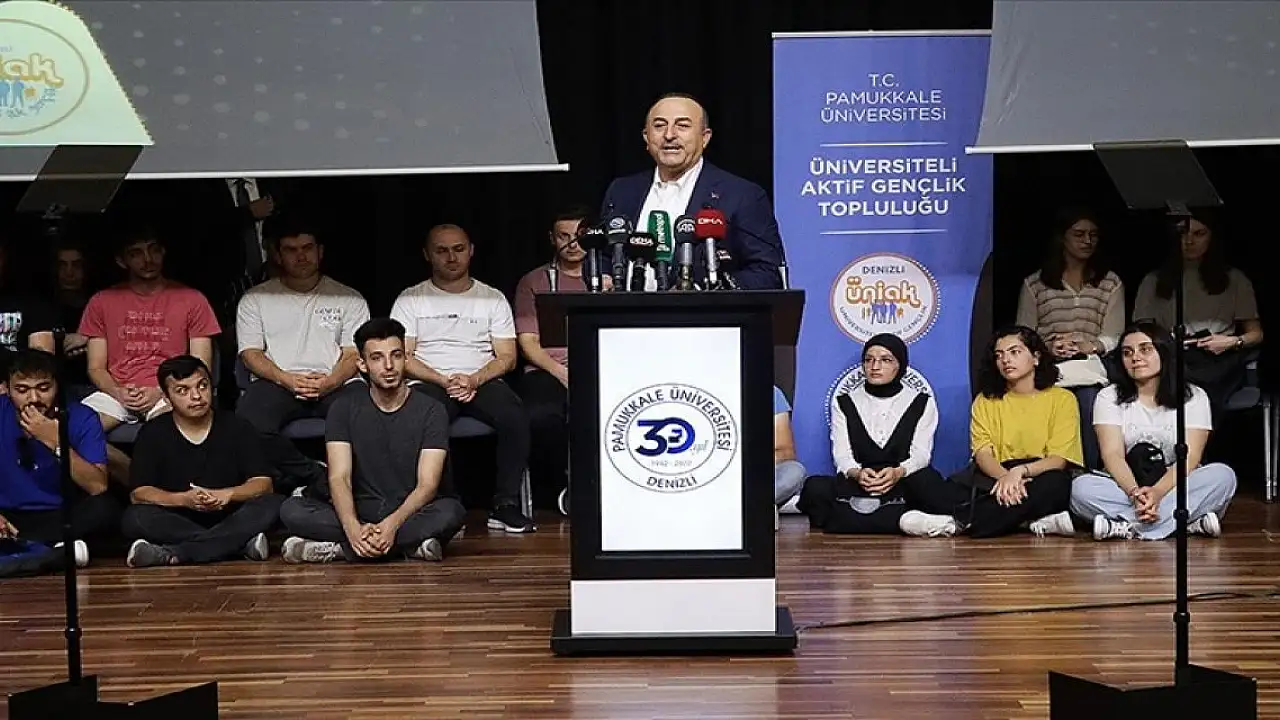 Pamukkale Üniversitesi ÜNİAK Gençlik Buluşması'na katılan Bakan Çavuşoğlu, Türkiye'nin karşısına dünya dahi dikilse Kıbrıs'ta, Ege'de, Doğu Akdeniz'de haklarını, hukuklarını korumaya devam edeceklerini ve bu konuda kararlı olduklarını söyledi.
