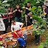 Çay bahçesinde hasat yapan Hakif Yılmaz, yakınından geçen çay yüklü ilkel teleferiğin sepetinin çarpması sonucu sırtından yaralandı.