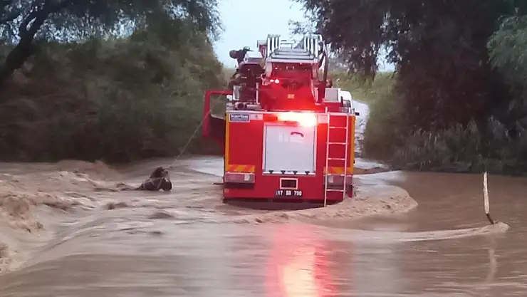 ÇANAKKALE'nin Ezine ilçesinde, Büyük Menderes Çayı Akköy Geçidinde bir otomobil, sağanak yağış nedeniyle yükselen çay sularına kapıldı. Son anda aracın üzerine çıkarak yardım isteyen 2 kişi, ekiplerin erken müdahalesi sayesinde kurtarıldı. Aynı bölgede 2019 yılında yaşanan benzer bir olayda otomobil sulara kapılmış ve içindeki 4 kişi boğularak yaşamlarını yitirmişti.