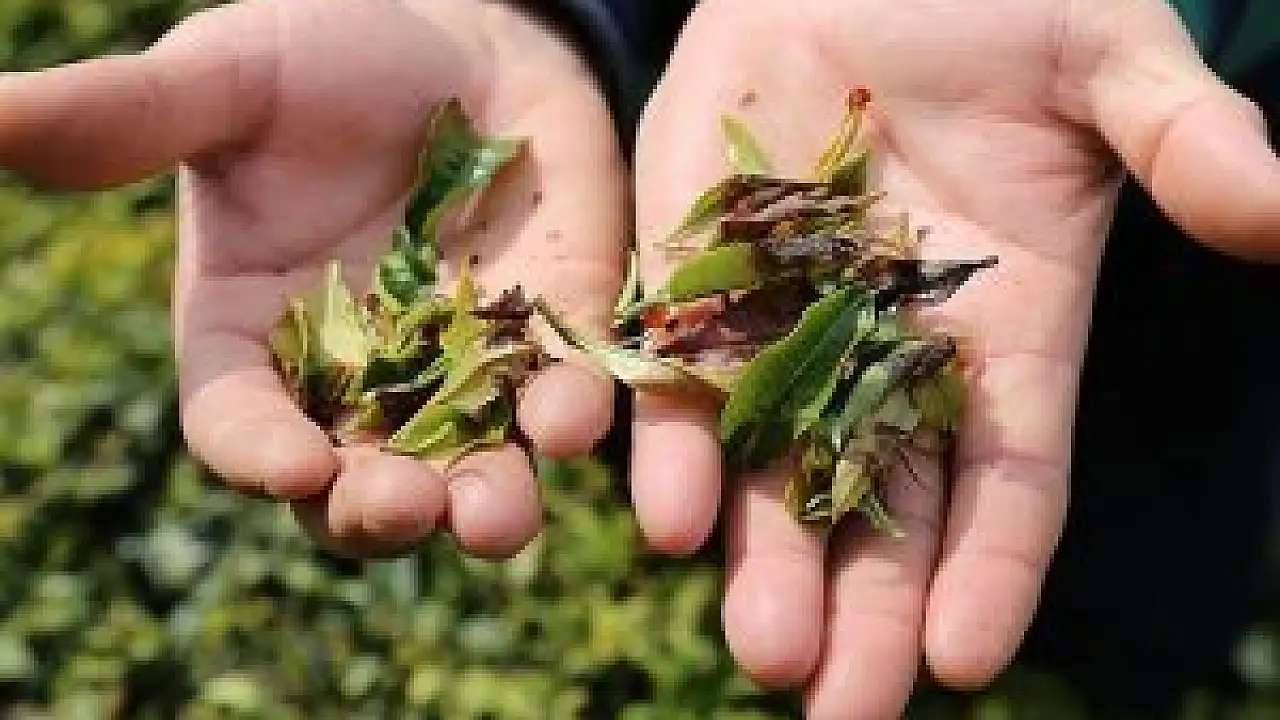 Doğu Karadeniz'de mart ayının son günlerinde etkili olar kar yağışı ve dondan çay bahçelerinin de olumsuz etkilendiği bildirildi.