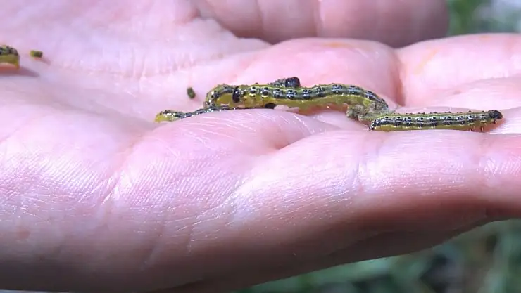 Prof. Dr. Yalçın Kaya, çayır tırtılı bu sene epidemi yaptığını kaydederek, "Normal şartlarda çayır tırtılı, 2002, 2012, 2022'de her 10 yılda bir epidemi yaptı. Tabii bunların 10 yıllık birikimi var. Çayır tırtılı neden zarar veriyor? Çünkü çayır tırtılı aslında sadece ayçiçeğine zarar veren bir böcek değil. Çayır tırtılı 150 fazla türde zarar yapıyor. Daha doğrusu tamamen yeşil canavarı. Yeşil bitki ne varsa bu aslında pancar ağa kurduyla aynı şekilde şeker pancarında, mısırlılarda diğer bitkilerde de zarar yapıyor. Özellikle o yabancı otların yoğun olduğu tarlalarda aşağılarda olan önce o otları yiyor, daha sonra yukarı doğru çıkarak zarar yapıyor" dedi.