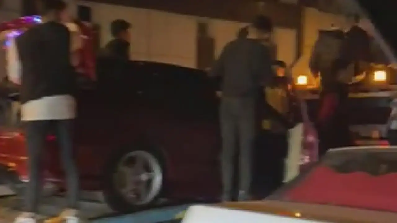 ARNAVUTKÖY'de bir grup genç çekici üzerindeki bir otomobilin etrafında son ses müzik dinleyerek yolculuk etti. O anlar başka bir sürücü tarafından cep telefonu kamerasıyla kaydedildi.