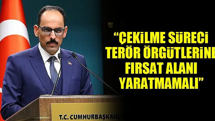Cumhurbaşkanlığı Sözcüsü Kalın, ABD heyetiyle Suriye'den çekilme sürecinin detaylarını görüştüklerini belirterek, 'Sürecin, PYD/YPG dahil olmak üzere terör örgütlerine ve başka unsurlara yeni fırsat alanı yaratmasına izin vermemeliyiz' dedi.