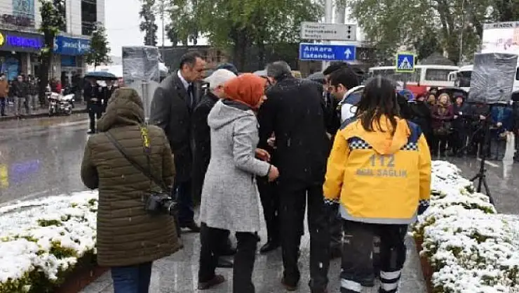 Sakarya Milli Eğitim Müdürü Sabri Doğan, 23 Nisan Ulusal Egemenlik ve Çocuk Bayramı nedeniyle Atatürk anıtına çelenk koymak istediği sırada düşüp hastanelik oldu.