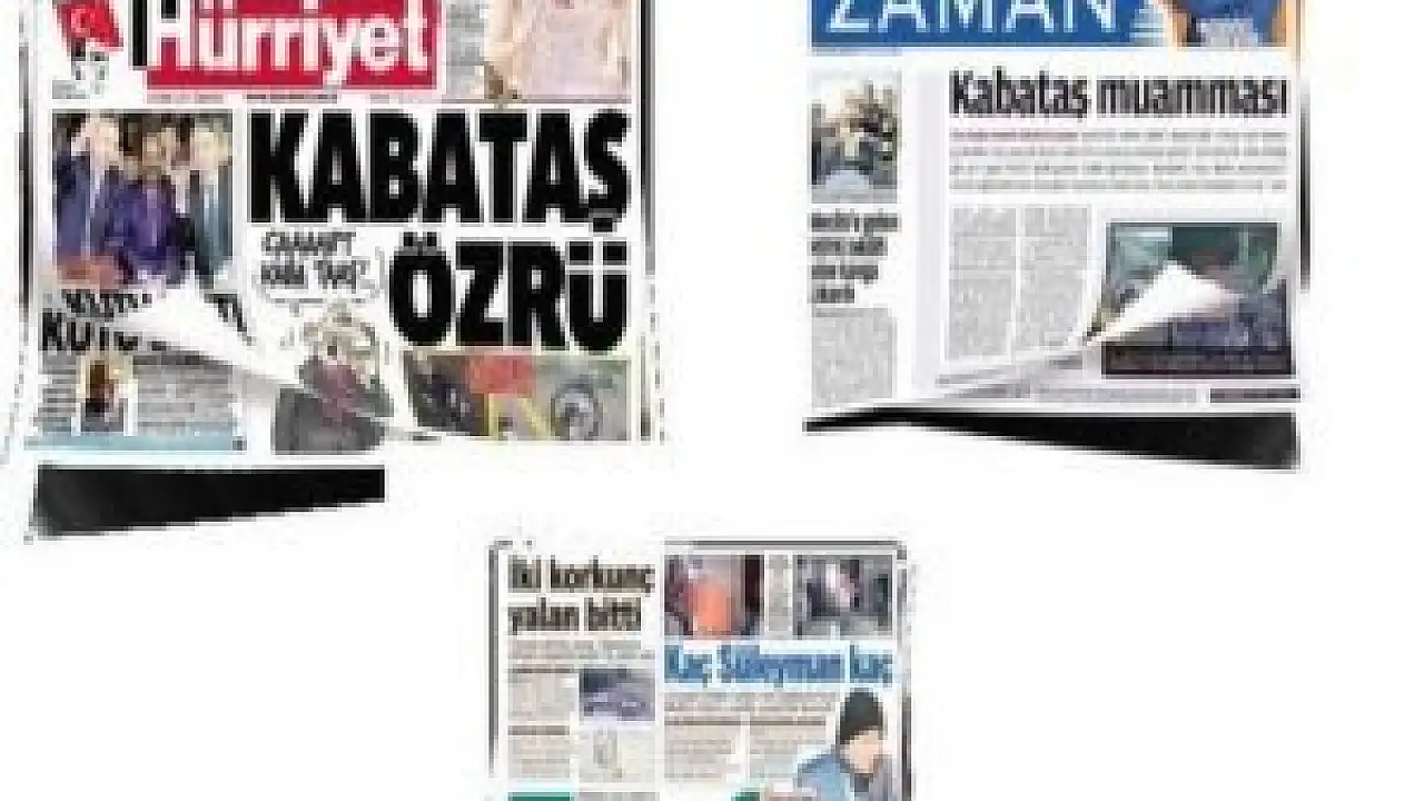 ZAMAN: 'Kabataş muamması' manşetiyle çıktı. 3. sayfada ise 'Kabataş'ta darp iddiaları kutuplaştırma senaryosu muydu' başlığı kullanıldı. Analizde 'Aylarca konuşulan olaya ilişkin yayınlanan görüntüler, iddiaların tamamının asılsız olduğunu ortaya koydu' denildi