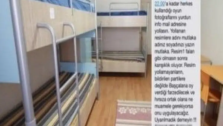 Mesajda öğrencilerin yerel seçimlerde oy kullandıkları pusulanın fotoğrafını çekerek kendi adlarıyla birlikte yurdun mailine atmaları, fotoğraf yollamayanların ise bildirilen partilere değil de AK Parti'ye oy attığı varsayılarak ona göre muamele yapılacağı bildirilerek adeta tehdit ediliyor ve öğrencilerin özgür iradeleri hiçe sayılıyor.