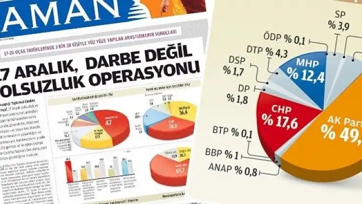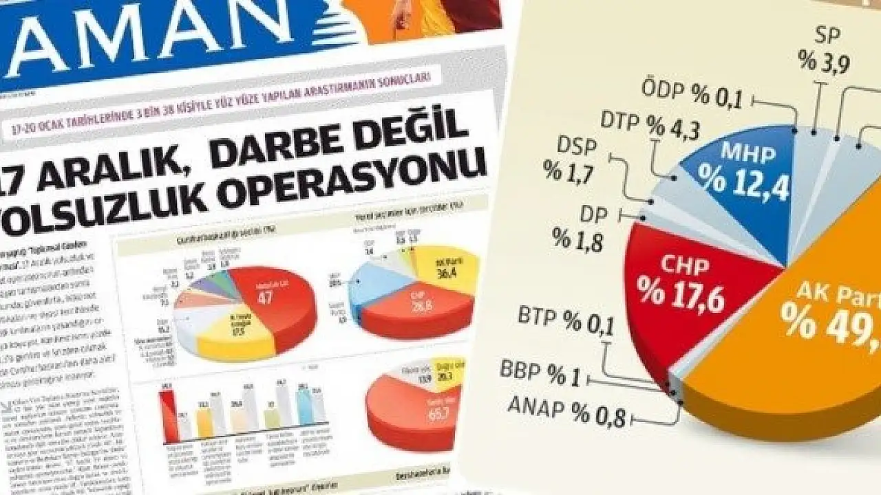 Zaman gazetesinde yayınlanan ve 17 Aralık'ı sorgulayan araştırma, 'AK Parti eriyor' başlıklarıyla sunuldu.