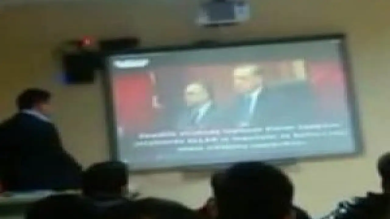 Propaganda yapan öğretmen, projeksiyon önünde açıklamalar yaparken öğrencilerden biri tarafından cep telefonuyla kaydedildi.